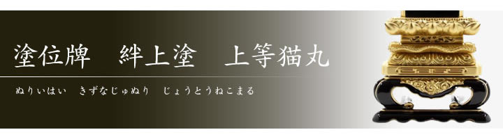 絆上塗位牌とは、熟練の職人による多数に渡る工程により呂色仕上げに匹敵する鏡面のように仕上げたお位牌です。多年に渡って御安置される故人の霊位の形をあらわすのにふさわしい逸品です。また、厳選した木材(米ヒバ材)を用い徹底した品質管理のもと国産有名メーカーの塗料で下地および上塗塗装を施しております。加飾で使用する金は、すべて金沢産です。五毛色金粉(純度約99%)と純金箔(純度約96%)を使用しております。