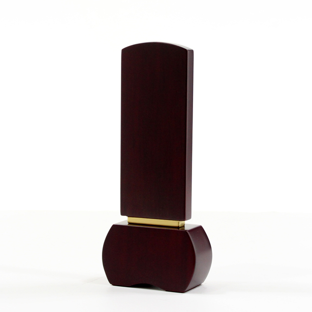 新世紀位牌「優徳」は、直線と曲線を融合させたシンプルで穏やかな雰囲気のお位牌です。硬く耐久性に優れた高級木材「花梨材」を使用しているため、木目の美しさや温かみも演出いたします。家具調仏壇との相性も良く、モダン位牌の中でも人気の高いお位牌です。また、徹底した品質管理のもと国産有名メーカーの塗料で下地および上塗塗装を施しております。加飾で使用する金は不変の輝きを保つために、金沢産の純金粉(純度約99%)を使用しております。
