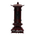 紫檀材「利休型回出」は、しなやかで美しい反り屋根に品格感じます。極めて硬く耐久性に優れた唐木「紫檀」を使用しています。希少価値の高い「パーロッサ」の上品な木目が高級感を演出いたします。徹底した品質管理のもと国産有名メーカーの塗料で下地および上塗塗装を施しております。